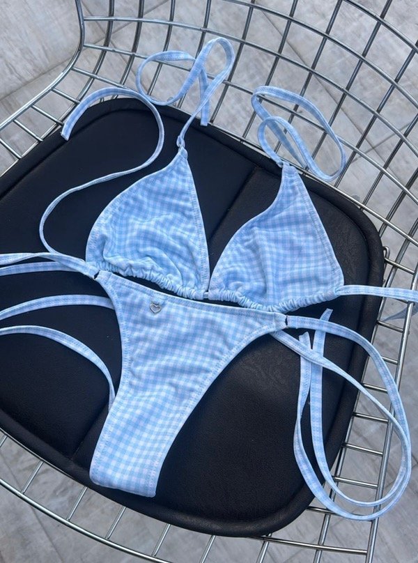 Confeccionado en Lycra Tricot estampada en cuadrille celeste, suave al tacto y excelente elasticidad.