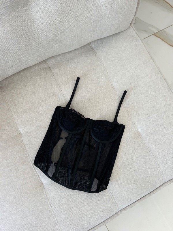 El Corset Selena esta confeccionado en puntilla y microtul, logrando un diseño moderno y estilizado con un calce comodo y seguro. Es un modelo larguito como se puede ver en la foto de la modelo!