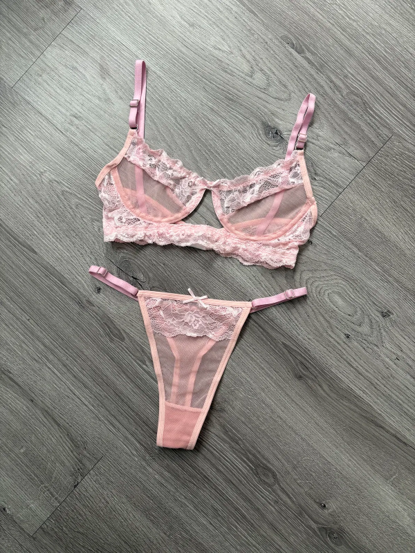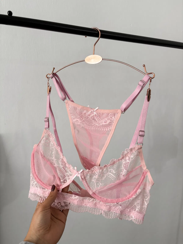 Conjunto hecho en puntilla y microtul elastizado. Corpiño con arco medio, y less regulable. Los talles +105 vienen con bretel ancho!
